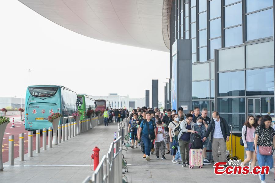 Photo taken on March 30, 2024, shows visitors arriving at Zhuhai Port on the Hong Kong-Zhuhai-Macao Bridge, south China's Guangdong Province. (Photo: China News Service/Chen Jimin)