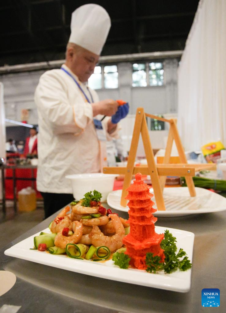 A chef competes during the 9th World Championship of Chinese Cuisine in Vancouver, British Columbia, Canada, on May 21, 2024. The 9th World Championship of Chinese Cuisine kicked off here on Tuesday, gathering chefs from around the world to compete in Chinese culinary skills in the three-day competition. (Photo by Liang Sen/Xinhua)