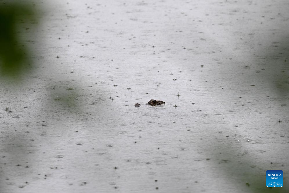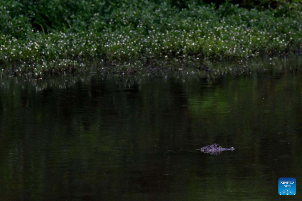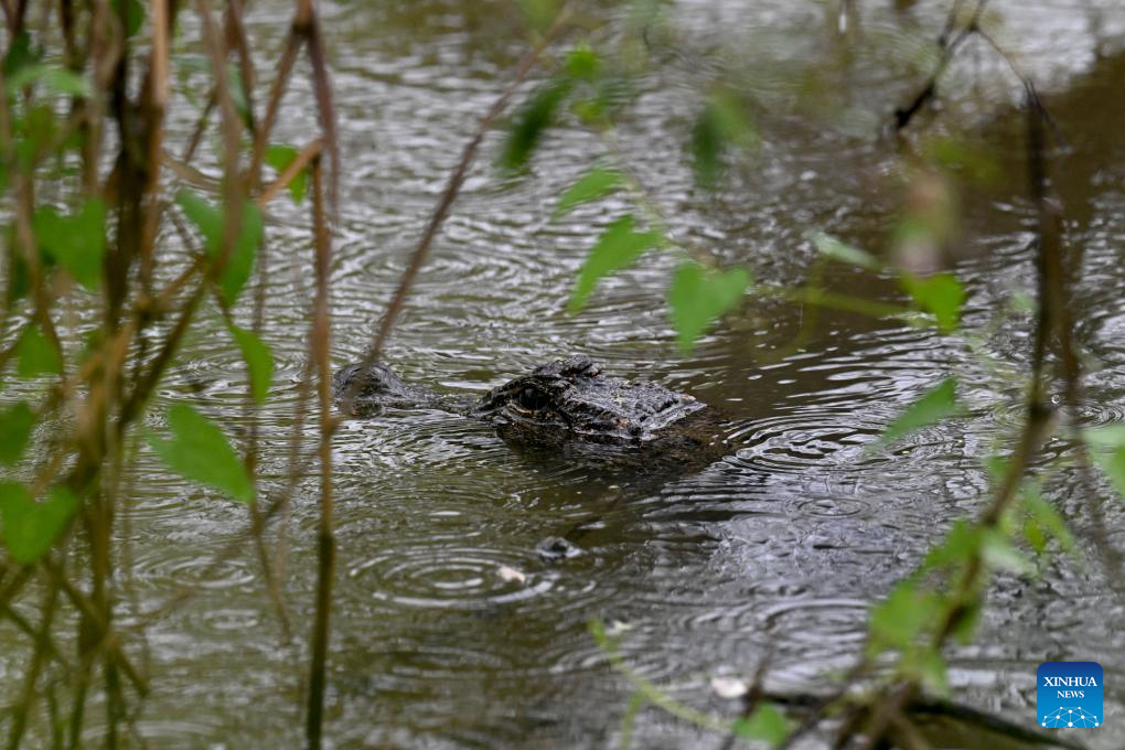 This photo taken on May 21, 2024 shows a Yangtze alligator in Changle area in Anhui Yangtze alligator national nature reserve, Nanling county of Wuhu City, east China's Anhui Province. (Xinhua/Huang Bohan)