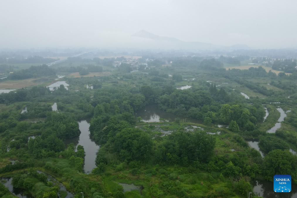 An aerial drone photo taken on May 21, 2024 shows the Changle area in Anhui Yangtze alligator national nature reserve, Nanling county of Wuhu City, east China's Anhui Province. (Xinhua/Huang Bohan)