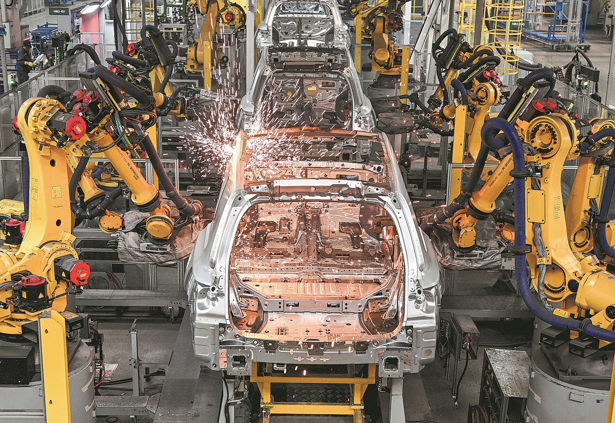 Robotic arms working on a production line of Chinese NEV startup Li Auto in Changzhou, Jiangsu province, on Jan 10. CHINA DAILY