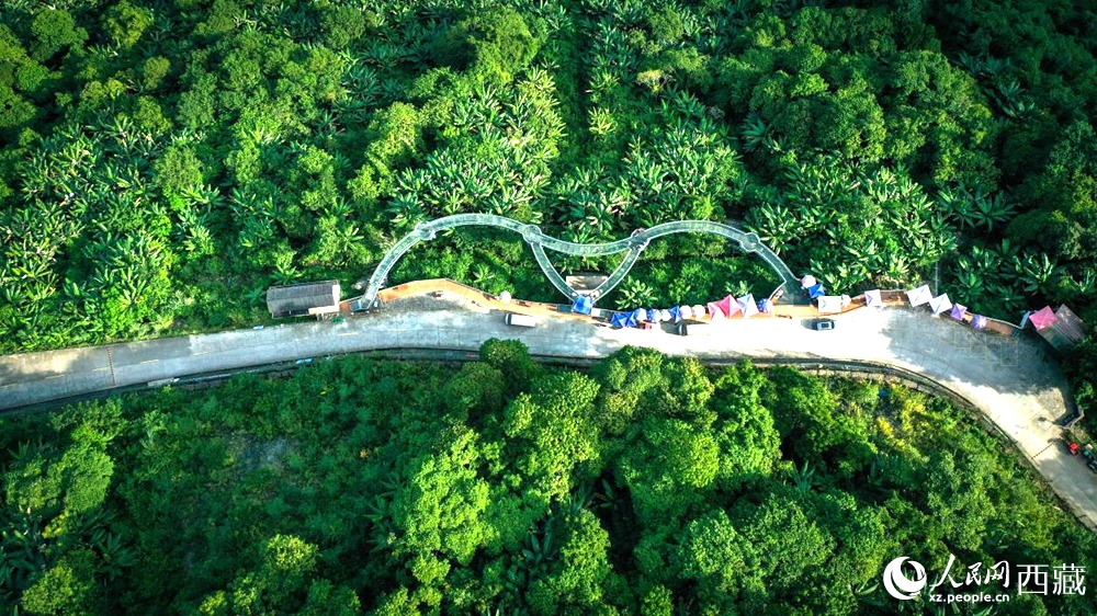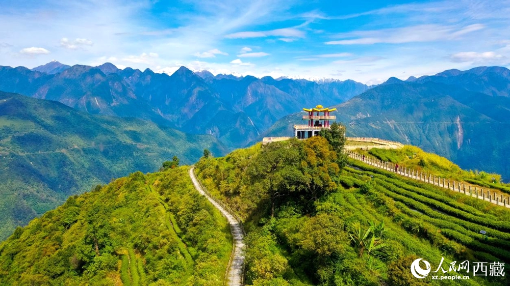 Photo shows a viewing platform in Gelin village, Metok county, Nyingchi city, southwest China's Xizang Autonomous Region. (People's Daily Online/Tsering Norbu)