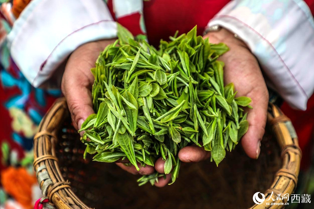Photo shows freshly picked tea leaves in Metok county, Nyingchi city, southwest China's Xizang Autonomous Region. (People's Daily Online/Tsering Norbu)