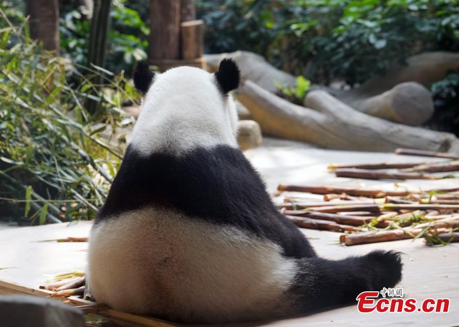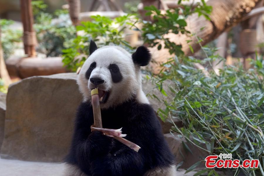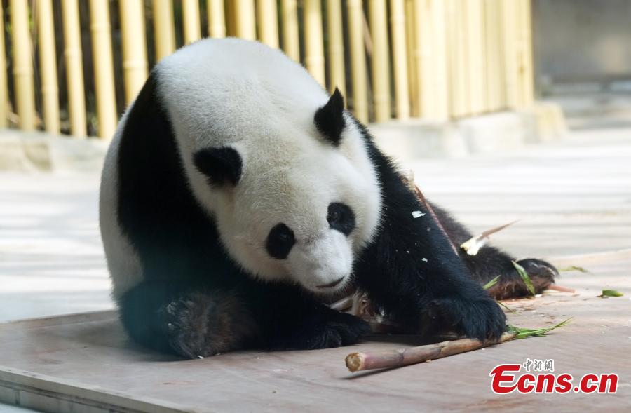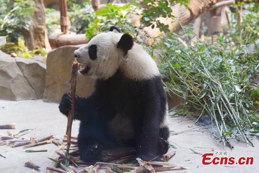 A giant panda enjoys a bamboo shoot at the Chengdu Research Base of Giant Panda Breeding, southwest China's Sichuan Province, May 22, 2024. (Photo: China News Service/An Yuan)