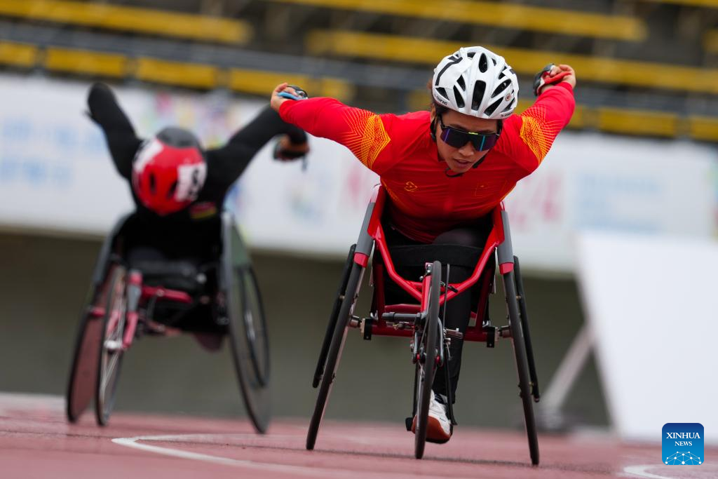 On the tracks at the Universiade Memorial Stadium, China's para runners celebrated triple one-two victories.