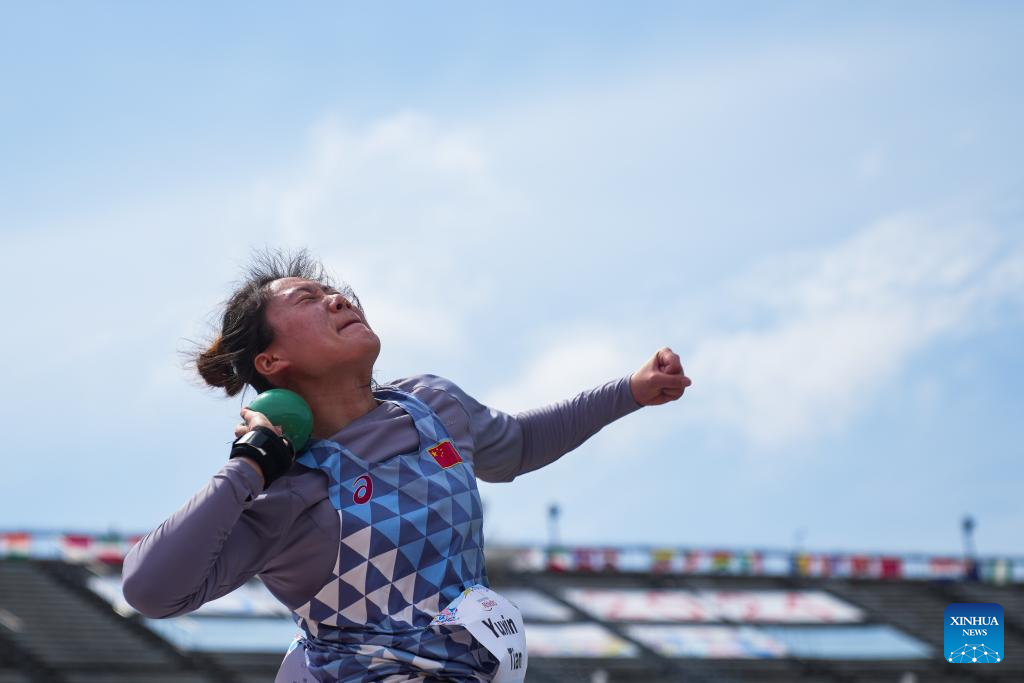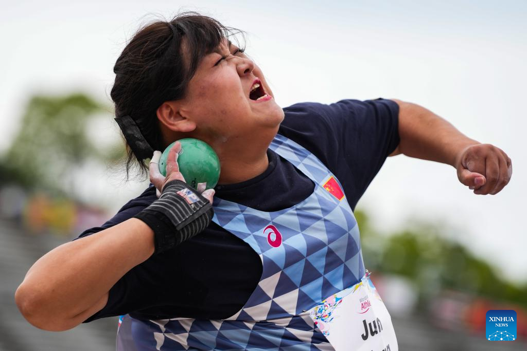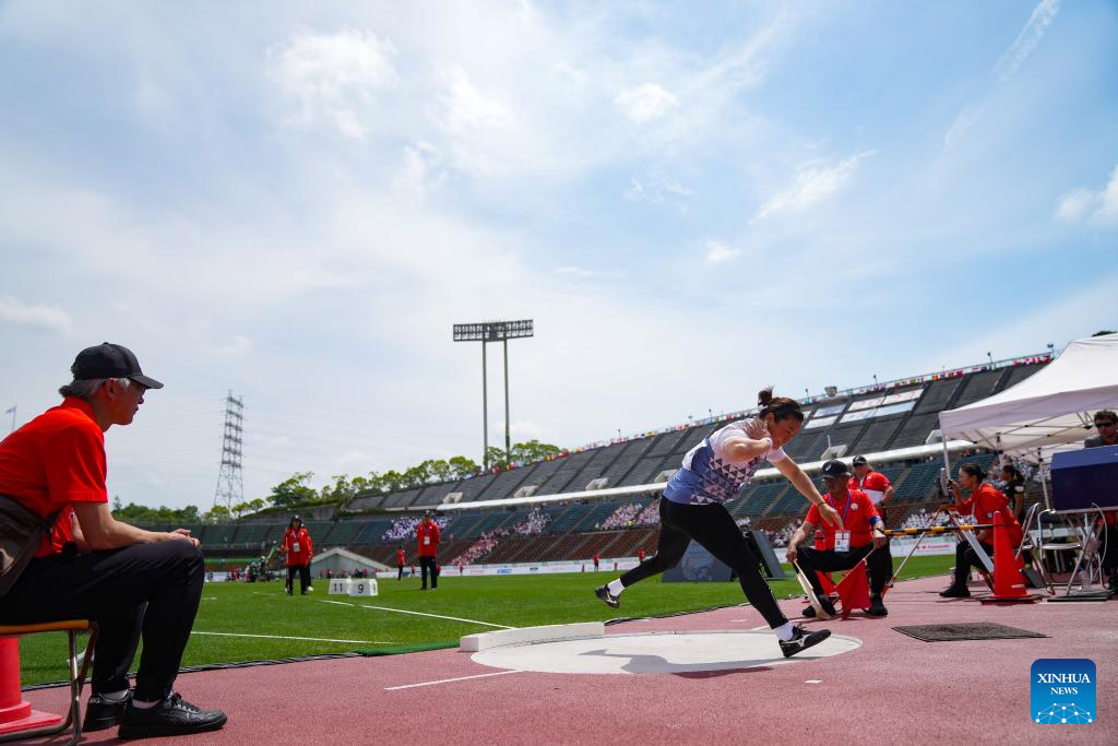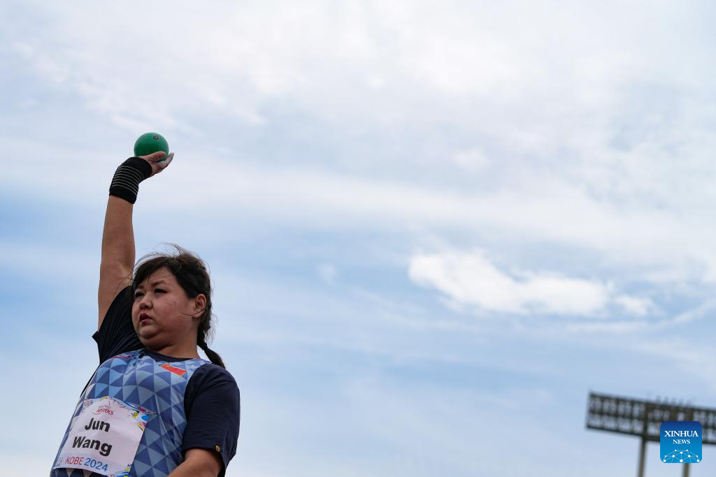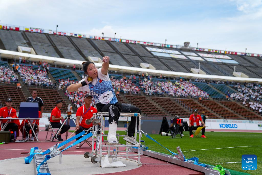 Wang Jun of China competes during Women's Shot Put F35 Final at the Para Athletics World Championships held in Kobe, Japan, on May 23, 2024. (Xinhua/Zhang Xiaoyu)