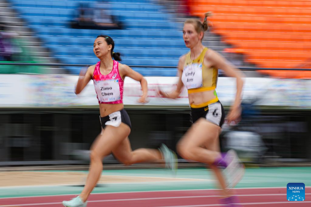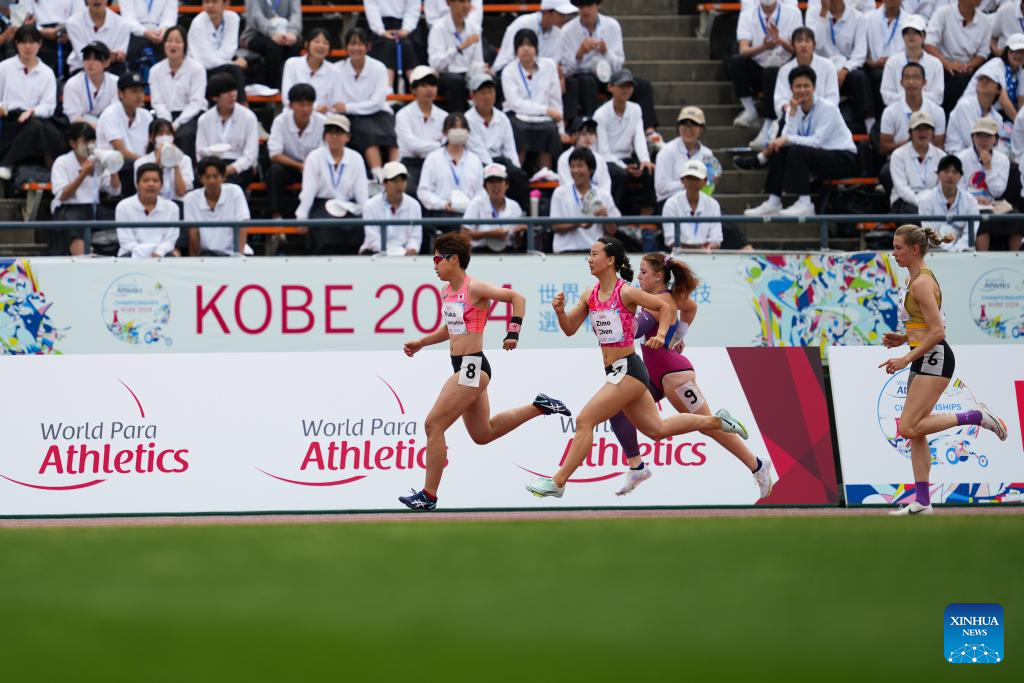 Chen Zimo (2nd L) of China competes during Women's 400m T38 Round 1 at the Para Athletics World Championships held in Kobe, Japan, on May 23, 2024. (Xinhua/Zhang Xiaoyu)