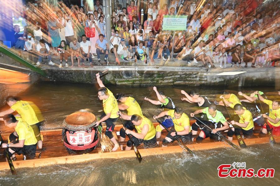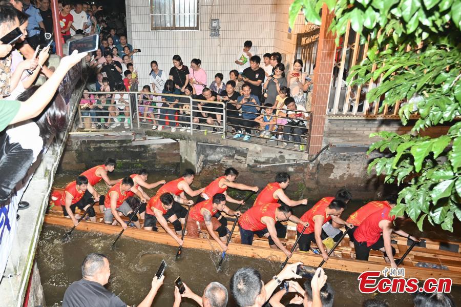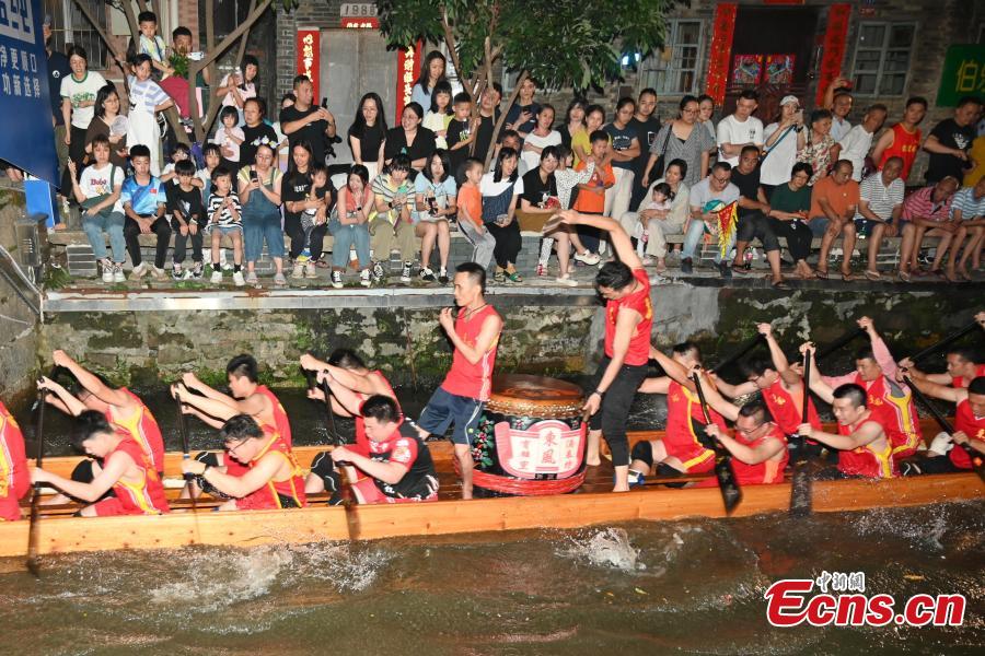 Villagers enhance night training for upcoming Dragon Boat Festival in Guangdong