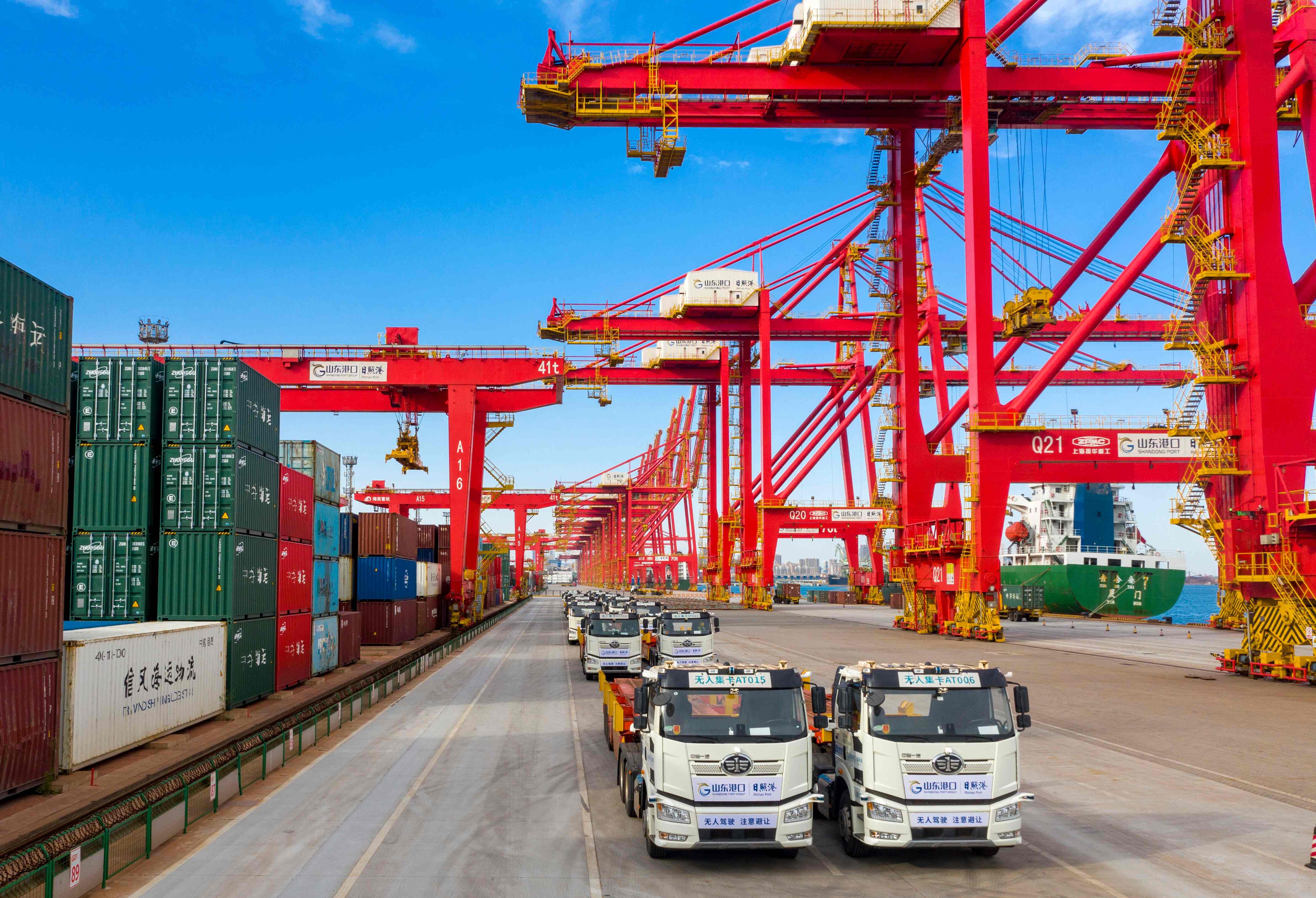 The next-generation intelligent transportation equipment, such as 5G-enabled automated guided vehicles and autonomous container trucks, have been deployed and put into operation.