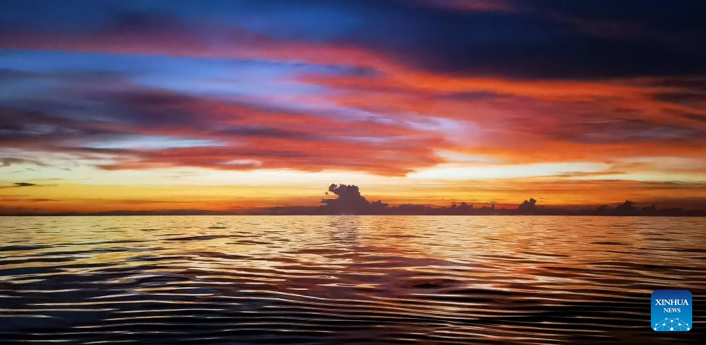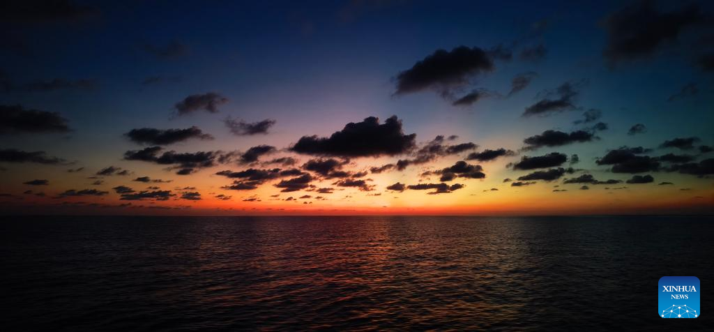 This photo taken on April 20, 2024 shows a view at dusk in the South China Sea. (Xinhua/Yuan Shuai)