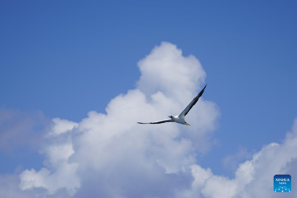 This photo taken on May 13, 2024 shows a seabird flying above the South China Sea. (Xinhua/Yuan Shuai)