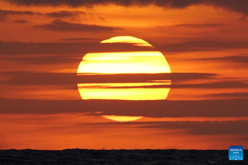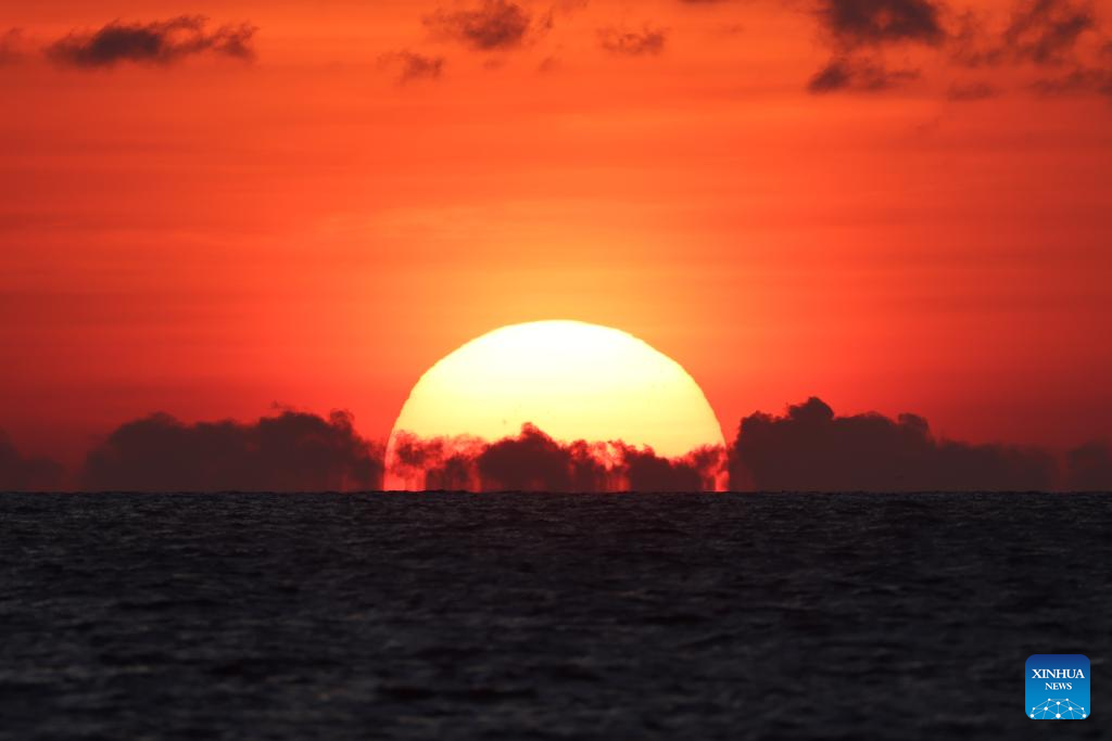 This photo taken on April 24, 2024 shows a sunrise in the South China Sea. (Xinhua/Yuan Shuai)