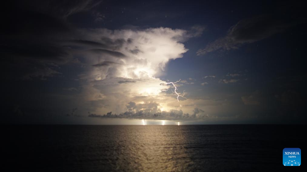 This photo taken on May 10, 2024 shows the lightnings above the South China Sea. (Xinhua/Yuan Shuai)