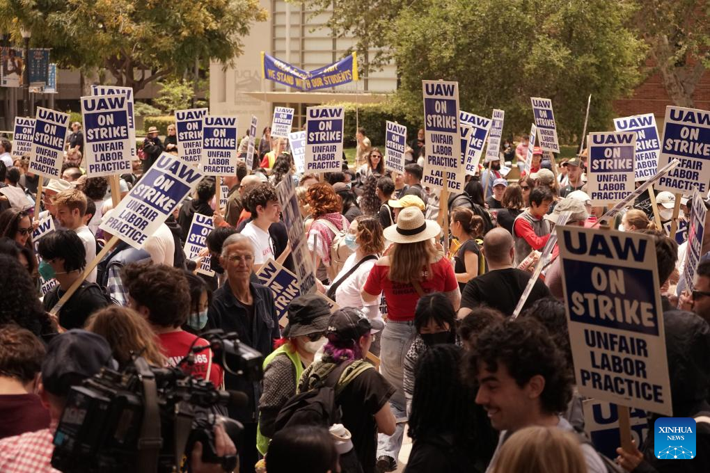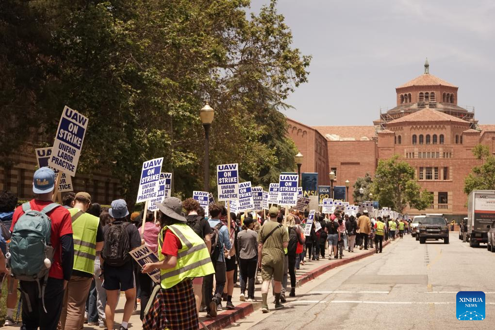 LOS ANGELES, May 28 (Xinhua) -- Academic workers at the University of California (UC), Los Angeles, in the U.S. state of California, walked off the job on Tuesday to protest the public university system's handling of pro-Palestinian protests.