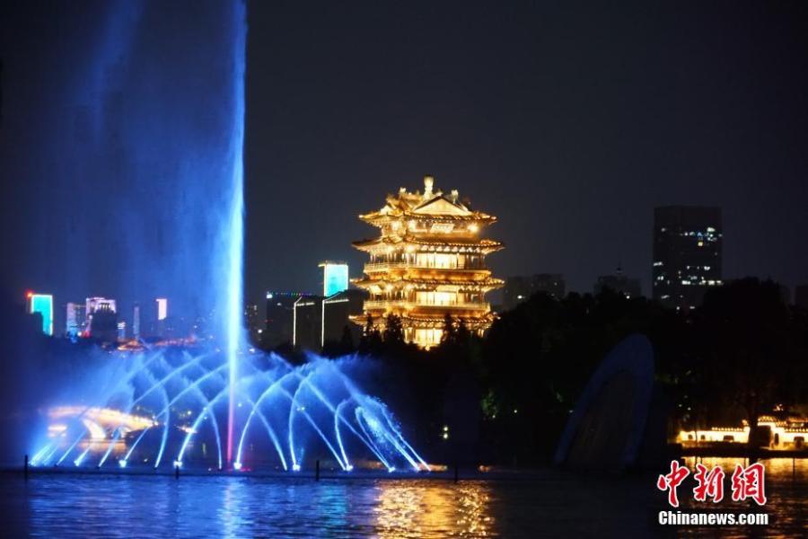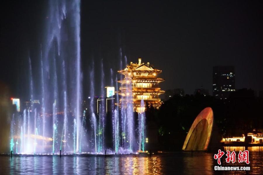 A light show is staged at Daming Lake in Jinan, dubbed China's "City of Springs", east China's Shandong Province, May 28, 2024. (Photo: China News Service/Wang Caiyi)