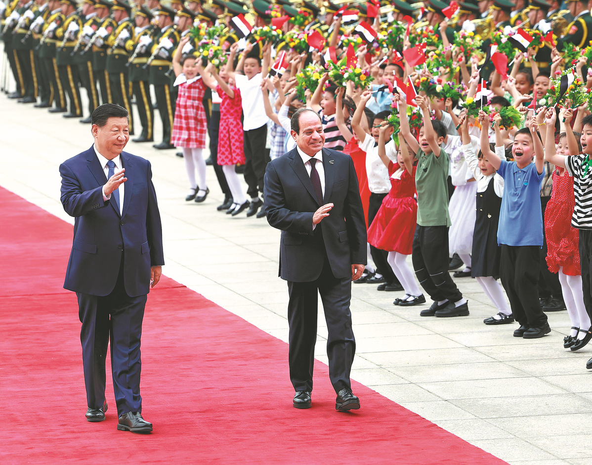President Xi Jinping holds a welcoming ceremony for Egyptian President Abdel Fattah El-Sisi in Beijing on Wednesday. DING HAITAO/XINHUA