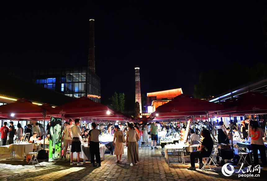 An overall view of the creative market in the Taoxichuan Ceramic Art Avenue in Jingdezhen, east China’s Jiangxi Province, May 26, 2024. The artistic atmosphere injects new vitality into the city night. (People’s Daily Online/Shi Yu)