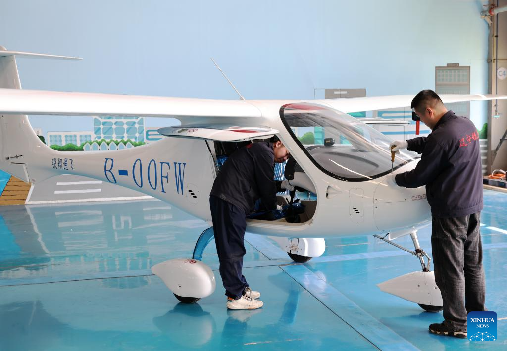 Staff members work on the final assembly of a light aircraft at a plant of Rhyxeon General Aircraft Co., Ltd. in Shenyang, northeast China's Liaoning Province, May 13, 2024. (Xinhua/Li Gang)