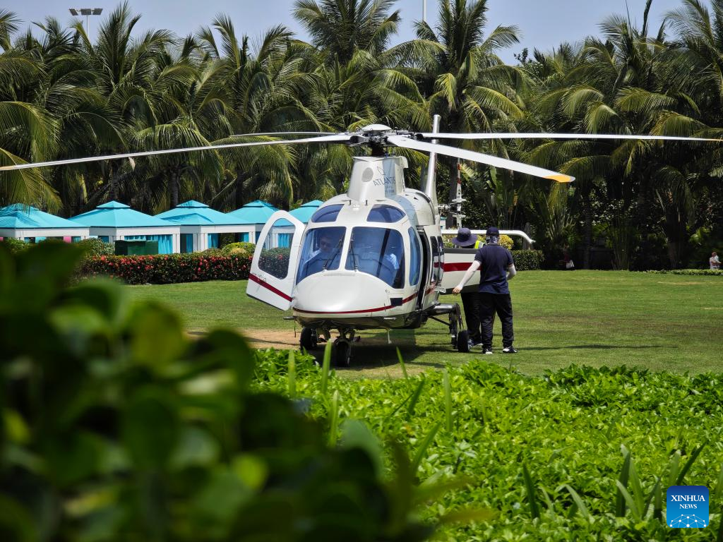 A helicopter of China General Aviation Co., Ltd. gets ready for an aerial tour in Sanya, south China's Hainan Province, March 21, 2024. (Xinhua/Zhou Huimin)