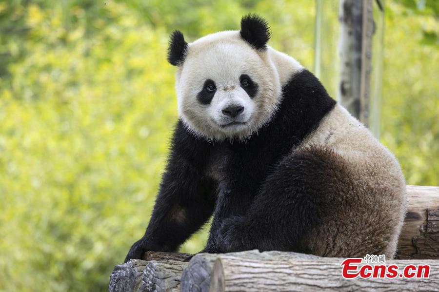 Giant panda Qing Bao eats bamboo at the Dujiangyan base of the China Giant Panda Conservation and Research Center in southwest China's Sichuan Province. (Photo/China News Service)