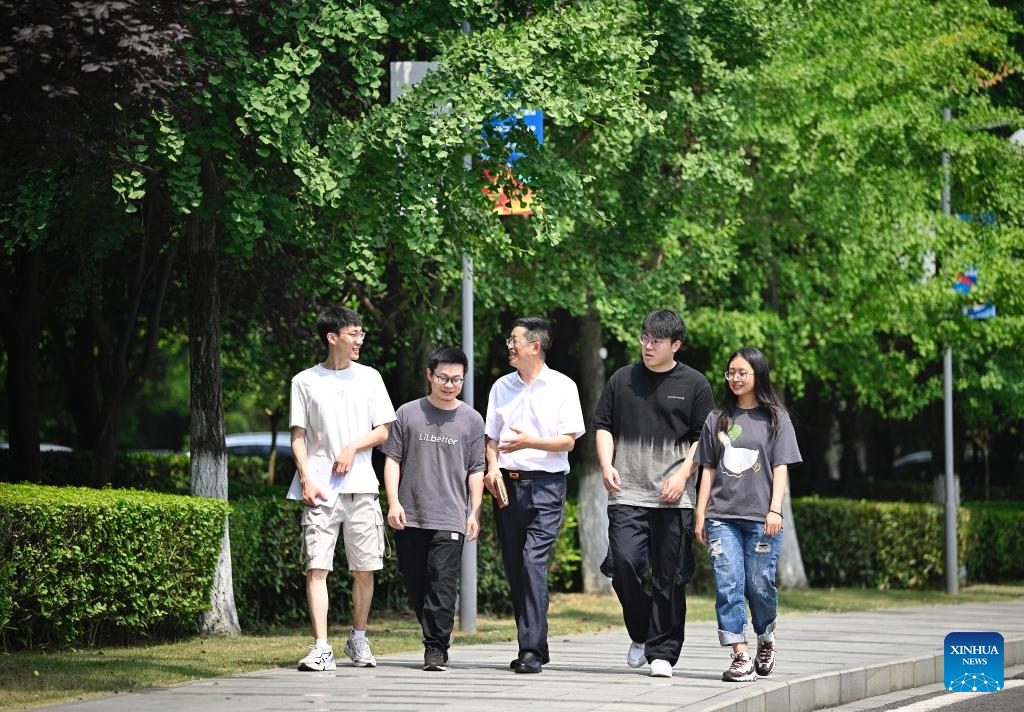 Zhong Yuanzhang (C) communicates with colleagues at Nuclear Power Institute of China in Chengdu, southwest China's Sichuan Province, May 24, 2024. Zhong was the deputy chief designer of Hualong One nuclear power project of the Nuclear Power Institute of China. Since his graduation from Chengdu University of Science and Technology (now Sichuan University) majoring in chemical engineering in 1986, Zhong has been engaged in reactor structure design and participated in the R&D of more than half of China's nuclear power plants. (Xinhua/Liu Kun)