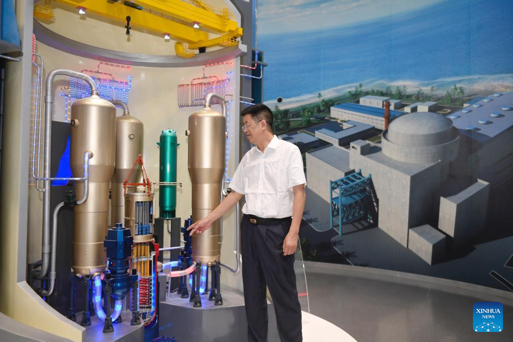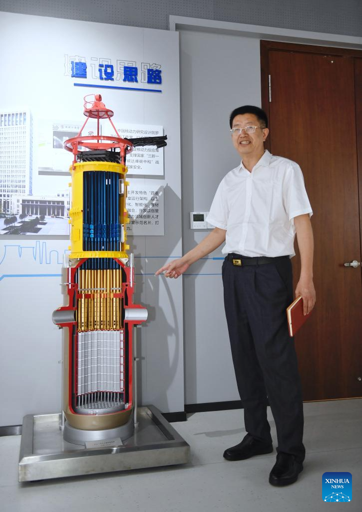 Zhong Yuanzhang shows a model of Hualong One reactor at Nuclear Power Institute of China in Chengdu, southwest China's Sichuan Province, May 24, 2024. Zhong was the deputy chief designer of Hualong One nuclear power project of the Nuclear Power Institute of China. Since his graduation from Chengdu University of Science and Technology (now Sichuan University) majoring in chemical engineering in 1986, Zhong has been engaged in reactor structure design and participated in the R&D of more than half of China's nuclear power plants. (Xinhua/Liu Kun)