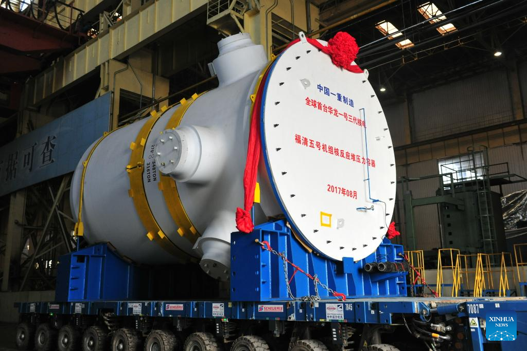 This file photo taken in August 2017 shows the reactor pressure vessel (RPV) of the No.5 unit of China National Nuclear Corporation's Fuqing nuclear power plant in southeast China's Fujian Province. Zhong was the deputy chief designer of Hualong One nuclear power project of the Nuclear Power Institute of China. Since his graduation from Chengdu University of Science and Technology (now Sichuan University) majoring in chemical engineering in 1986, Zhong has been engaged in reactor structure design and participated in the R&D of more than half of China's nuclear power plants. (Xinhua)