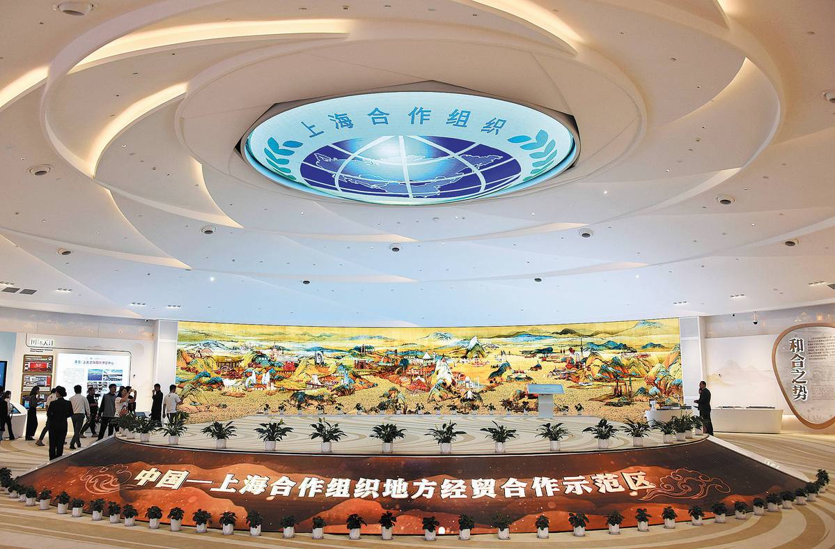 Visitors check out an exhibition hall at the China-Shanghai Cooperation Organization Local Economic and Trade Cooperation Demonstration Area in Qingdao, Shandong province, in May 2023. [Photo/Xinhua]
