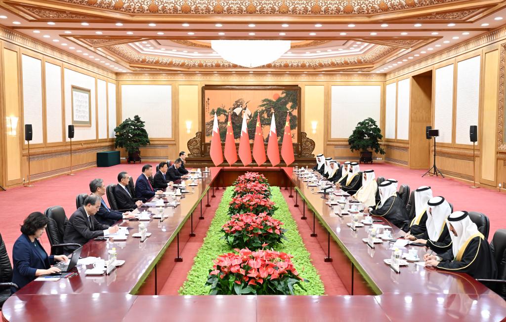 He noted that Bahrain abides by the one-China principle, supports China's peaceful reunification, and is willing to work closely with China through multilateral cooperation to ensure people of all countries enjoy equal rights to subsistence and development. Bahrain is ready to work with China to push for an early completion of the GCC-China Free Trade Agreement, carry forward the spirit of the Arab states-China friendship, and join hands to build an Arab states-China community with a shared future in the new era.