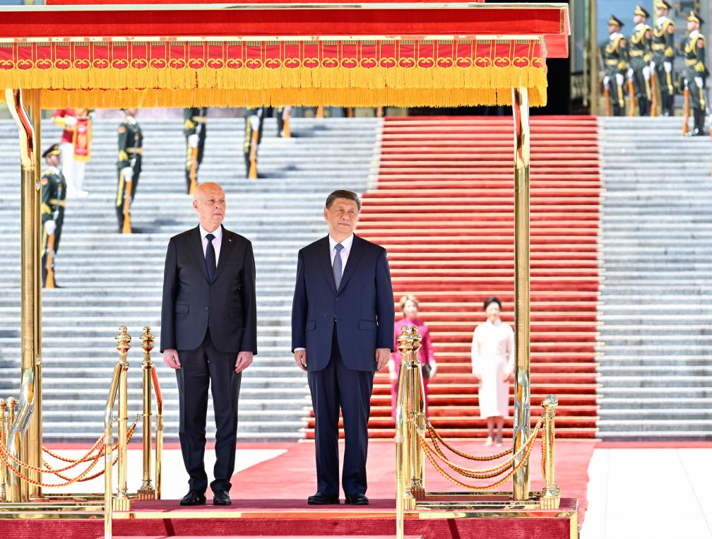 Prior to the talks, Xi and his wife Peng Liyuan held a welcome ceremony for Saied and his wife. A welcome banquet was also held for the guests around noon.