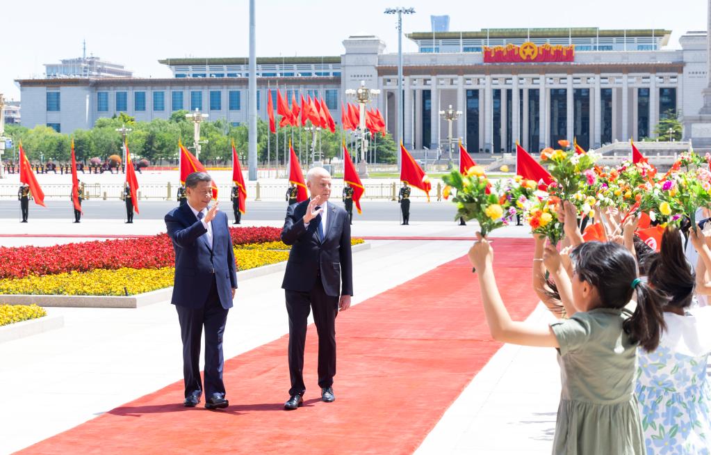 Chinese President Xi Jinping holds a welcome ceremony for Tunisian President Kais Saied at the square outside the east gate of the Great Hall of the People before their talks in Beijing, capital of China, May 31, 2024. Xi held talks with Kais Saied in Beijing on Friday. Kais Saied, who is in China on a state visit, attended the opening ceremony of the 10th ministerial conference of the China-Arab States Cooperation Forum. (Xinhua/Pang Xinglei)