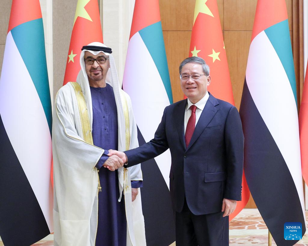 BEIJING, May 31 (Xinhua) -- Chinese Premier Li Qiang met with President of the United Arab Emirates (UAE) Sheikh Mohamed bin Zayed Al Nahyan in Beijing on Friday.