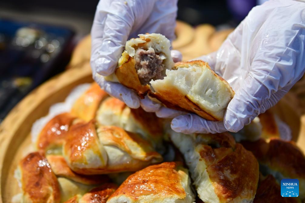 A chef shows roasted buns during a lamb cooking contest in Yumin County of Tacheng Prefecture, northwest China's Xinjiang Uygur Autonomous Region, June 2, 2024. (Xinhua/Ding Lei)