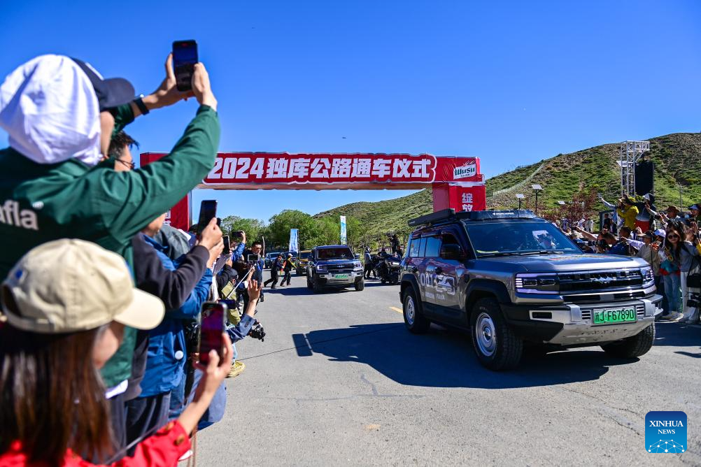 Vehicles set off to the Duku Highway in Usu City, northwest China's Xinjiang Uygur Autonomous Region, June 1, 2024. (Xinhua/Ding Lei)
