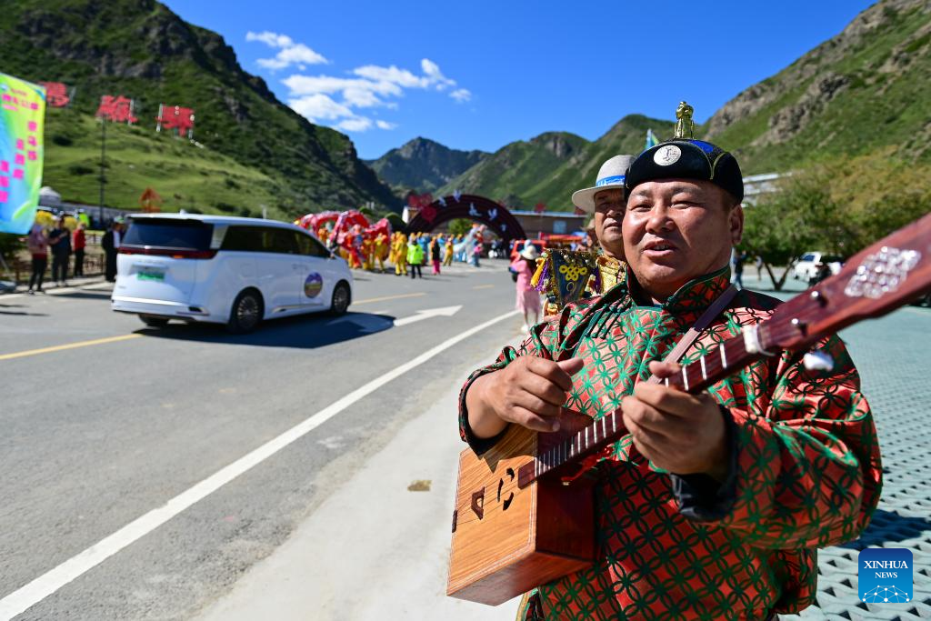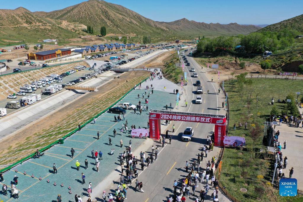 A ceremony marking the resumption of traffic on the Duku Highway is held in Usu City, northwest China's Xinjiang Uygur Autonomous Region, June 1, 2024. (Xinhua/Ding Lei)