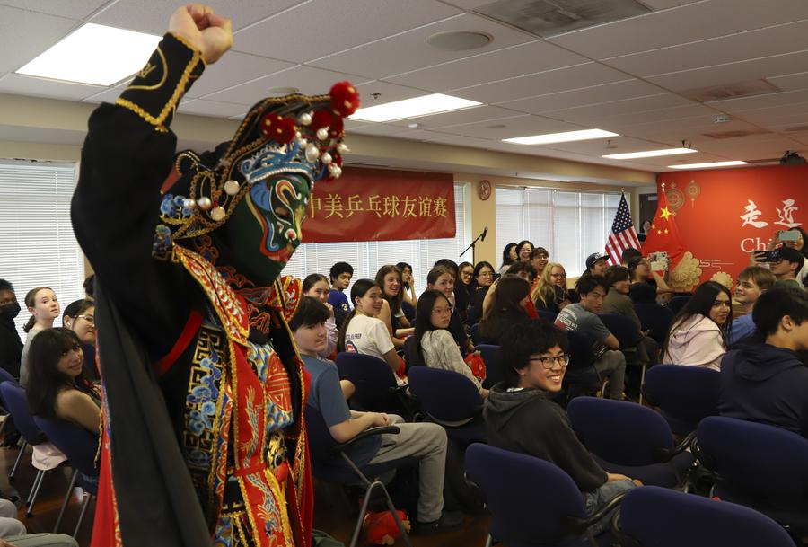 A player performs face-changing, part of the Sichuan Opera, during a Chinese class held at the Chinese Consulate General in Chicago, the United States, May 21, 2024. (Photo by Wang Li/Xinhua)