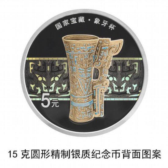 Another silver coin will mainly portray an ivory cup, while the other will depict a rectangular wine vessel with lotus and crane.