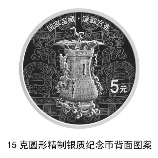 The reverse of each of the silver coins will be inscribed with a combination of images of ancient national artifacts, face value, and Chinese characters indicating the name of the respective artifact mainly featured by each coin.