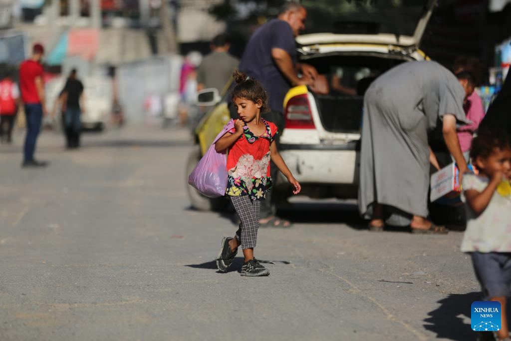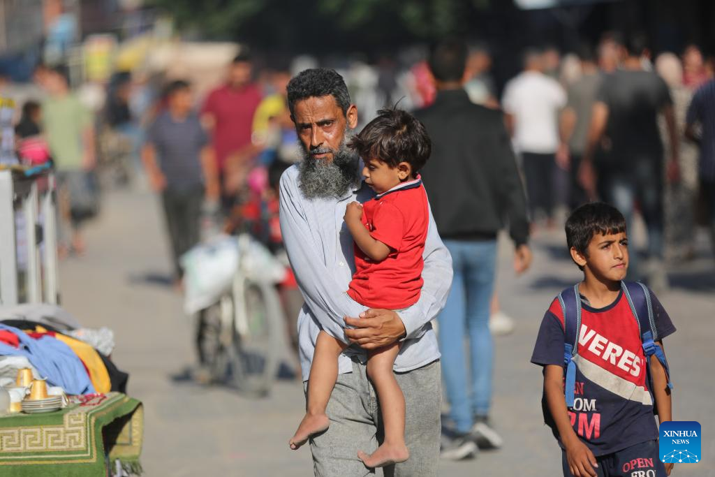 Munira al-Sayed, another displaced woman, has also been forced to sleep in her relatives' tent in Deir al-Balah, central Gaza. "This is the third time I've been displaced with my two children after my husband was killed in an Israeli airstrike in Al-Nuseirat," the 27-year-old mother told Xinhua, her eyes brimming with tears.