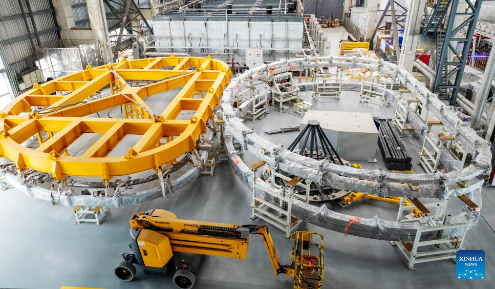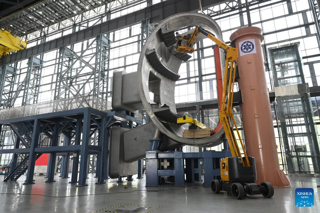 Staff members set up equipment in the Comprehensive Research Facility for Fusion Technology (CRAFT) in Hefei, east China's Anhui Province, April 25, 2024. (Xinhua/Zhou Mu)