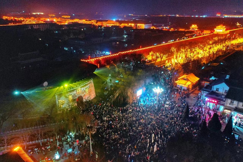 Photo shows a night scene of the palace wall of the Confucius scenic area in Qufu, east China's Shandong Province. (Photo/Yang Guoqing)