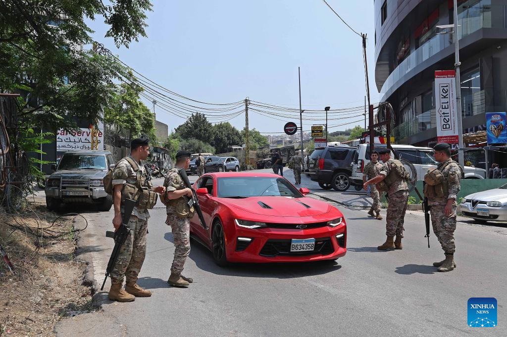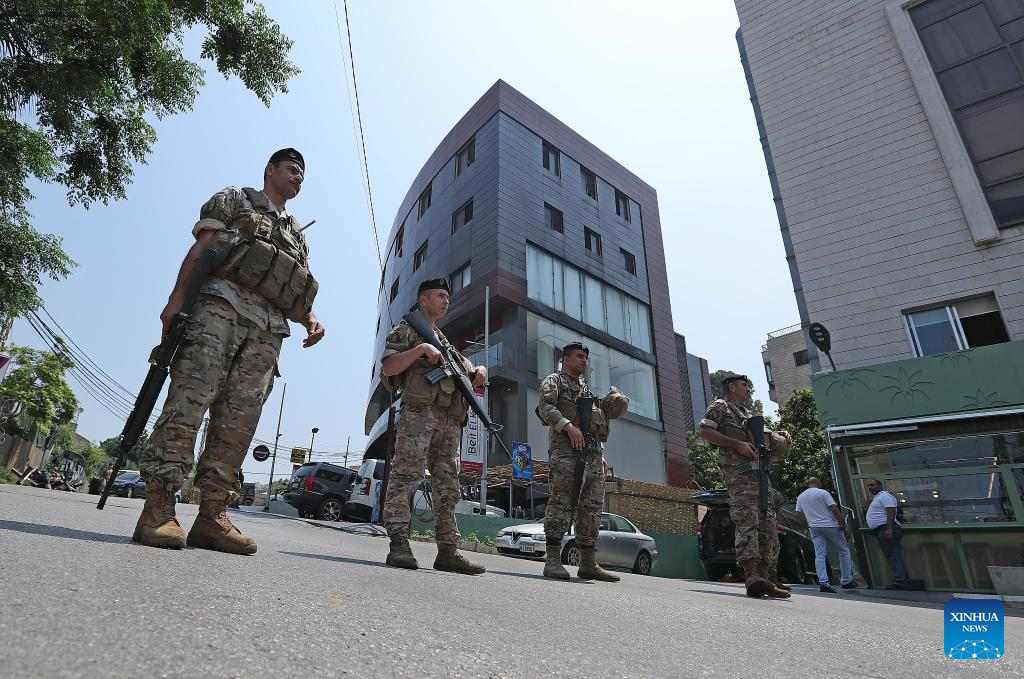 Members of the Lebanese Army are seen in the vicinity of the U.S. embassy in Beirut, Lebanon, on June 5, 2024. (Xinhua/Bilal Jawich)