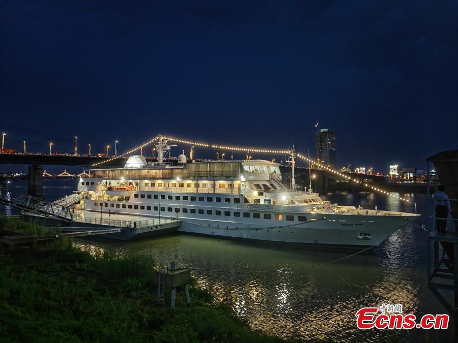 Doulos Hope, the world's second-largest maritime library ship docks at a port in Phnom Penh, Cambodia, June 5, 2024. (Photo: China News Service/Yang Qiang)