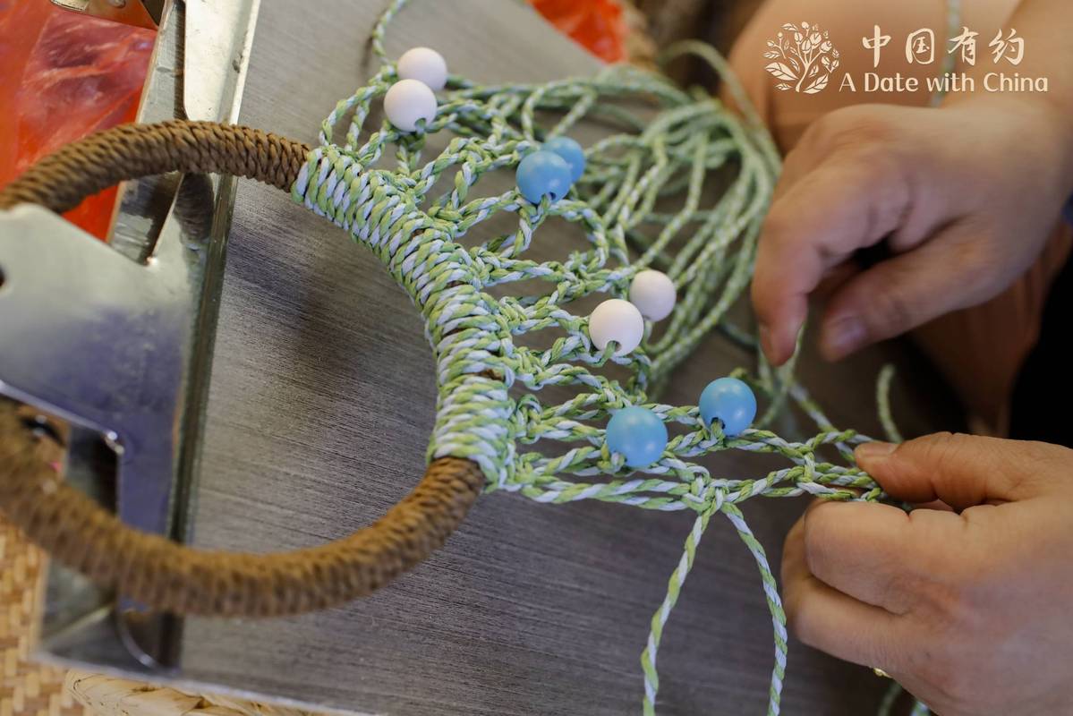 A local handicraftsman works on a bag at the Xinhe Straw Weaving Pavilion in Pingdu, East China's Shandong province on June 5, 2024. [Photo/chinadaily.com.cn]