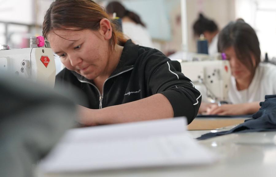 Employees work at a factory of the Shache Xiongying Textile Co., Ltd. in Shache, northwest China's Xinjiang Uygur Autonomous Region, June 2, 2024. (Xinhua/Su Chuanyi)