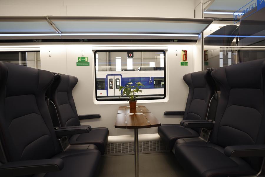 This is the interior of the new Chinese-built high-speed train unveiled in Belgrade, Serbia, June 7, 2024. (Photo by Ren Weiyun/Xinhua)