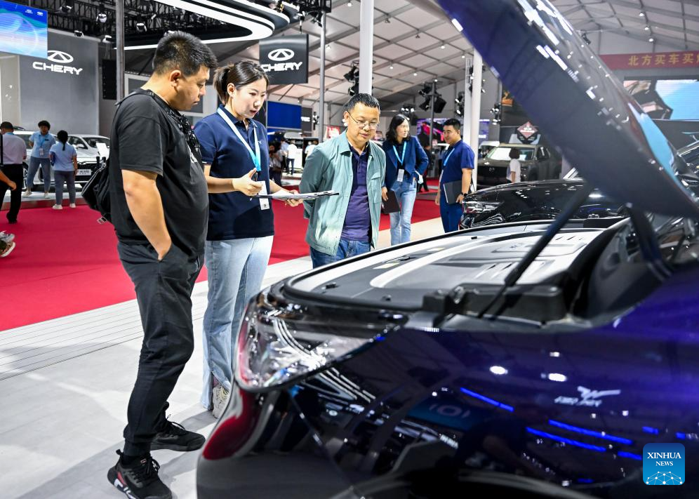 People visit an auto show in Hohhot, north China's Inner Mongolia Autonomous Region, June 7, 2024. The 16th Hohhot International Auto Show kicked off at Inner Mongolia International Convention & Exhibition Center in Hohhot on Friday, and will last until June 11. (Xinhua/Li Zhipeng)