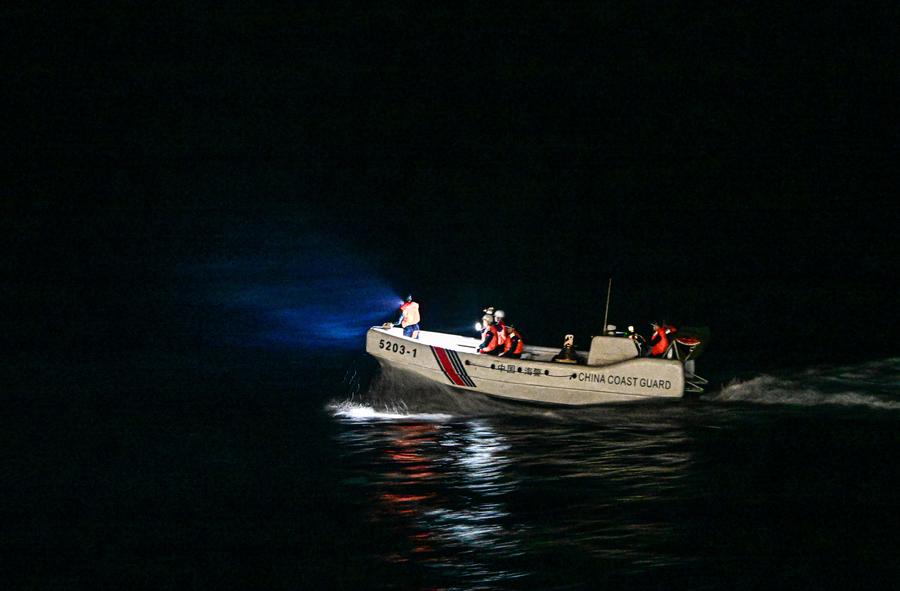 Law enforcers of China Coast Guard take a boat to a designated sea area to carry out tasks in the waters of China's Ren'ai Jiao, April 5, 2024. (Xinhua/Pu Xiaoxu)