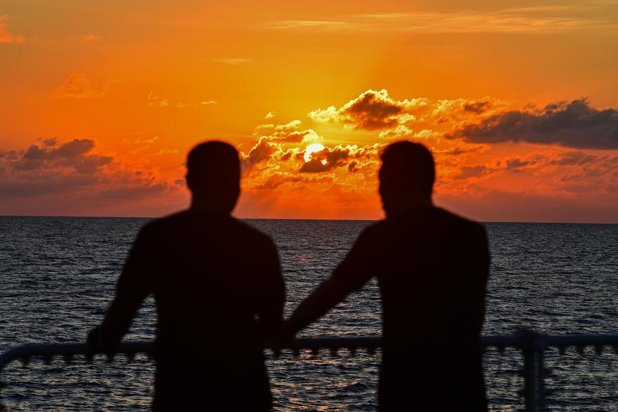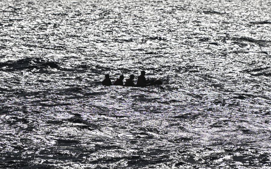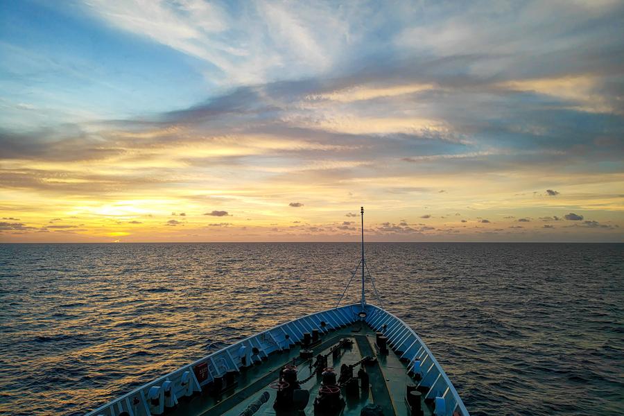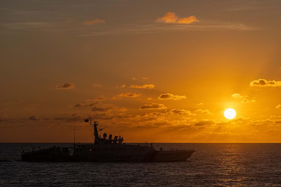 Silhouette of law enforcers are seen on China Coast Guard vessel Huayang patrolling the waters of China's Ren'ai Jiao, April 2, 2024. (Xinhua/Pu Xiaoxu)