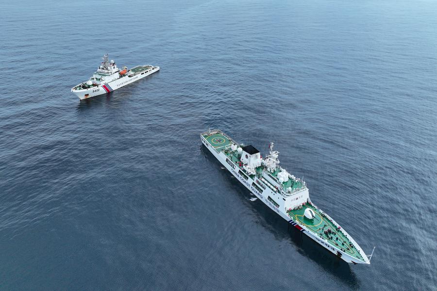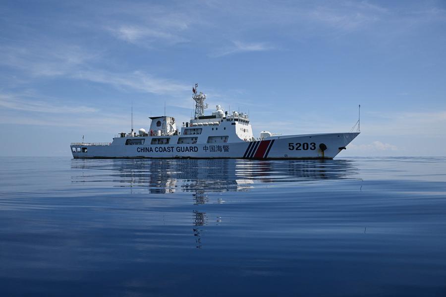 This photo taken on May 5, 2024 shows China Coast Guard vessel Huayang patrolling the waters of China's Ren'ai Jiao. (Xinhua/Pu Xiaoxu)